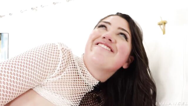 - Description: Vivacious, flirtatious brunette Alyx Star squeezes her fleshy, natural tits in sexy fishnet lingerie. She peels the garment off slowly, stripping for hung stud Zac Wild. He whips out his big cock, and she kneels to offer him an eager, spit-soaked blowjob. Alyx wraps her lush lips around the head of his dick and thrusts his shaft down her throat, letting drool drip down her chin. She spreads her long legs and invites Zac to shove his meaty boner inside her wet pussy. The aroused girl moans passionately as his prick pounds her cunt. Zac slides his shaft between her big boobs for a titty fuck. He slathers her alabaster body in shiny oil. Alyx squeezes her breasts together enthusiastically, and Zac crams her cleavage. More aggressive pussy pounding climaxes with Zac shooting a creamy load of semen all over Alyx's bodacious boobs.