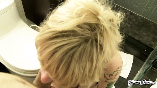 - Description: They said shower sex is overrated. They said it’s only fun to watch and it’s really hard to do the real thing. Gwen Derringer and James Deen are back at it again to prove that statement wrong. And what is the best way to do this? Exactly— do it themselves. But Gwen known for having a quirky personality is not gonna make this bland at all. They won’t go at it immediately. Gwen will show some of her side that makes her a little different from others. Giving a head is the usual course of things with James Deen. But this time, the shower head will do Gwen a favor. She uses it to give herself some good pussy scrubbing and get herself off. This MILF will takes her time and do the introductions herself. Once done, Gwen invites James Deen inside to do some fucking— amateur style. Gwen starts her thing with a good blowjob for him. It seems being wet from the shower is not enough for them. They need something more awesome to make things go smoothly. Please understand that throughout these amateur applications, Gwen will be giving occasional blowjobs again and again. We heard that she’s really great at it. Let her do what she do best. Moving on, James can’t resist this tattooed chick’s charms anymore. James will make this reality sex move to the next stage. While standing up, James just sort of lift one of Gwen’s legs and just penetrated that blonde chick’s cunt. Her big tits just look really great especially in times like these. Since they are in the showers, their position choices are limited. He just flips her body around to get a different view. It’s nice to see James and Gwen get each other off. Gwen successfully made another source of liquid in the showers.