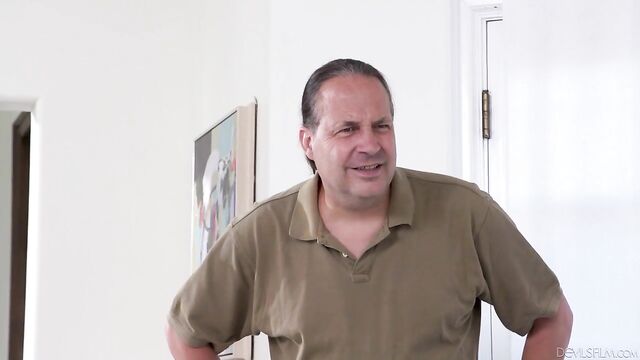 - Description: Eric John is showing his gardener, Ramon Nomar, what kind of improvements he would like to make to the greenery around his home. Suddenly, Eric's stepdaughter, Penelope Kay, runs outside to greet them... with her bare breasts showing! Eric is annoyed and tells her to go back inside, then apologizes to Ramon, explaining that Penelope is an exhibitionist. Ramon doesn't mind, saying it's clear that she's a free spirit. However, Eric is unamused and goes inside to lecture Penelope, telling her she shouldn't be flaunting her body to the gardener. But Penelope is dismissive, saying she probably made Ramon's day.After Eric leaves the room, Penelope looks out the window and sees Ramon working outside. She catches his attention by performing a striptease right by the window, and he takes out his cock to show how much he appreciates her display. Eric then comes back into the room just in time to see Penelope letting Ramon inside. Eric is stunned, but continues to silently watch even as Penelope sucks Ramon's cock and then lets Ramon tittyfuck her and pound his cock into her pussy!