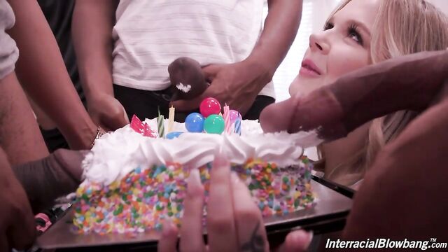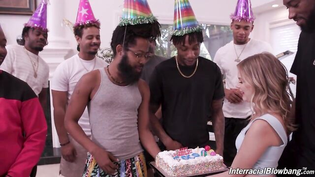 - Description: It's a big day for little Coco. It's her birthday so when she wakes up and sees no balloons in her bedroom or breakfast being served she feels her boyfriend has forgotten her. Hurt and depressed she gets up to get something to eat and is greeted with a surprise of 10 of his friends holding a cake and yelling Happy Birthday. Running down to see her cake she asks where the presents are and they pull out their cocks for her. This is the best present any young girl can get. What a wonderful boyfriend Coco has to get so many BBCs together for a blowbang. Immediately she is choking and gagging on all the cock that can fit into her little tiny mouth. She is a hungry girl and is sucking like a vacuum as she moves from cock to cock. Soon she is in a pretzel as they do a salsa line on her mouth in mouthfuck dance. She is squirting and squirming as her throat is filled with huge sausages. Upside down they power fuck her face as her saliva covers her eyes. Soon they are all blasting a wonderful birthday semen frosting all over her face. Now this will be a birthday she will remember for the rest of her life.