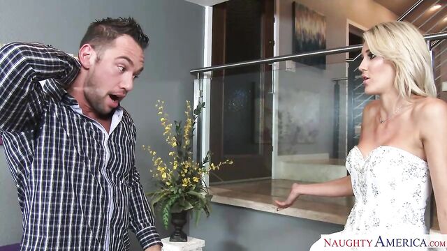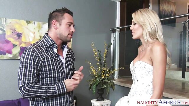 - Description: Audrey Show just showed up with the dress for her sister's wedding. Johnny wants to make sure the dress is well taken care of, but Audrey decides to try it on herself. After trying it on she accidentally spills coffee on it. Johnny is going bonkers and he's ready to tell the bride about the dress, but Audrey convinces Johnny to lie about the stain in exchange for a great fuck session.