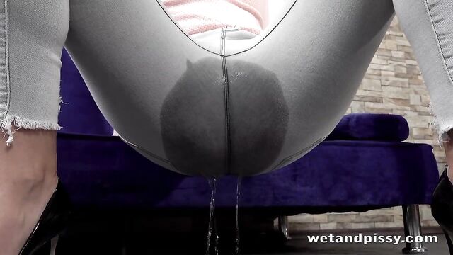 - Description: How excited are we to have Jenifer Jane back for our latest Wet and Pissy scene! This stunning brunette walks in high heels and tight grey denims over to the couch and immediately starts to rub her hands over her crotch, looking desperate to pee. Jenifer squats on the tiled floor and holds onto the couch behind her while she starts peeing her pants, letting her stream drizzle through her crotch and onto the floor! Her denims get a nice juicy wet patch on them and this naughty minx touches her soaked jeans and tastes her juices. Jenifer starts to strip and climbs up onto the glass dining table to masturbate. She pauses to start pussy pissing down onto the glass and Jenifer licks up her golden nectar. Now completely naked, this horny babe toys herself with a vibrator and pees again, this time on the floor. She paddles her feet in her juicy puddle and sits down in her wet mess to finish her vibrator play!