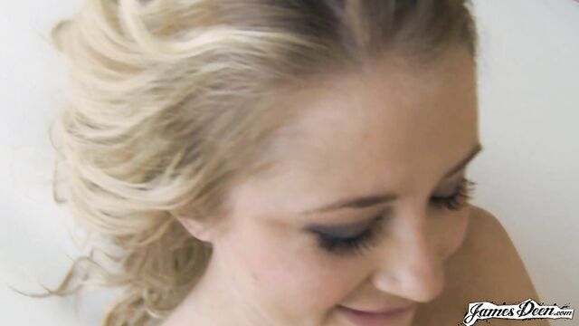 - Description: Mandy Armani is sitting on a chair and smiling awkwardly at the camera. Just by looking at how quickly her hand moves from one position to another; she seems uneasy. She rather looked too prim and proper with her choices of clothes to wear today. As the conversation between her and the person on the other side of the camera progresses, her what seems to be a very innocent face gradually turns into a sexy vixen who every man would want to fuck. She is finally getting comfortable with James Deen. Her smile seems sincere now. Her arms and hands looked like they have never moved or changed a bit. She now feels relaxed being around him. She slowly lifts one of her legs and places it on the chair that she is sitting on. She suddenly gets up heading in front of the camera. Blonde beauty Mandy is now lying naked on a white cloth on the floor. She looks like a different person with her clothes off. With her nipples already hard as fuck, eyes shut and one hand grabbing the cloth, the porn star might have started eating her pussy, the kind of action that she always looks forward to. Wearing a black t-shirt, he continues to tongue-fucked her pussy. She was definitely enjoying it as she licks her lips at the pleasure. As he licks her clit, he felt that she was about to cum. He turns her around. Her bare butt cheeks facing him. He continues pussy eating her as he turns her on the side. Mandy’s heartbeat is already racing too fast when James brings her lying on her back again. When he noticed that, he buried his face on her womanhood, licked and bit her clit and eats her like tomorrow is not coming. She came over and over again all over his face and he was completely satisfied with his actions.