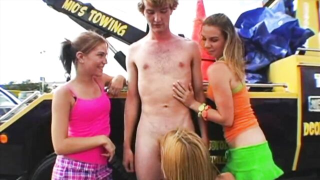 - Description: Theres nothing like a relzing car ride through through a beautiful landscape...i always h**hly recommend one for whenever youre feeling low or bored it can really lift up your spirits..but it is very important to always be prepared..check youre oil, chek your tires and if ata ll possible try to take a car that isnt on its last dying breath... i should probably heed my own advice, im often guilty of not doing so but hey thats me!! not that i wasnt prepared for this little excusion i took with my two buddies elli and brooke...only my preparation may differ lisghlty from most other roadside checklists...while most are keen on never leaving the house without having a spare tire or an extra quart of oil handy i am sure never to go anywhere without some condoms and well oil..but of a different kind hehe...if you havnt figured it out allready yes this shoot is about me and my friends getting stranded after our car dies out...luckily for us i had my cell phone and made a call for a tow truck...even luckier for us the towtruck man was a studmuffin little gingerboy...lets just say we got our tow free of charge..and lets also just say we had our way with the towtrackman..in other words we sucked and fucked his brains out...i love road trips!!!