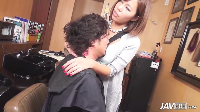 - Description: After smothering her customer’s face with her big boobs, He would rather have her touch his cock instead of getting a haircut from Sara Sajiyo. After she handles his hard pole, its time to uncover her luscious mounds and suck on her delicious nipples. Pulling down her tight jeans and playing with her round lickable ass is next. Her trimmed pussy gets fingered, and her asshole gets licked as Sara convulses with a powerful orgasm. Some dick sucking and tit fucking leads to her getting stuffed with his dick. Some fucking and fingering has her squirting and screaming which leads to the guy shooting his load on her worked over pussy.