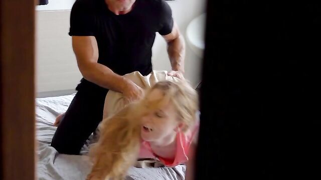- Description: Ivi Rein has an older boyfriend in Renato, and she loves to rub it in her stepbrother's face. Nikki Nutz tries to talk some sense into his stepsis, but Ivi refuses to hear it. Later, Renato is busy giving Ivi some rough treatment as they make out when Nikki walks by. He can't help but hover by the door as Renato plumbs Ivi's mouth with his thumb and then grabs her hair to get her on her knees for a spanking.Ivi knows Nikki is there. She eventually beckons for him to come in. Renato welcomes Nikki and asks if he wans to watch his stepsister get fucked. Not one to be picky about seeing a hottie like Ivi naked, Nikki comes in for some voyeurism. Renato keeps it rough as he undresses Ivi and face fucks her with his cock. Then he gets on his back and pulls Ivi on top to ride him in reverse cowgirl.Nikki keeps on watching as Renato rolls Ivi to bang her hard as they spoon. That leads to a reverse cowgirl pussy pounding with Renato's hand wound in Ivi's hair and the other around her neck to hold her in place. Another reverse cowgirl stint leads to Ivi on her back with Renato pistoning into her juicy snatch. She takes Renato's cock and his spankings on her belly, at which point she invites Nikki to join in. Ivi loves Nikki's hands pulling her hair as she sucks him down while taking Renato's fuck stick from behind. Then Renato gets to his feet so obedient Ivi can take a facial from two guys one after the other.