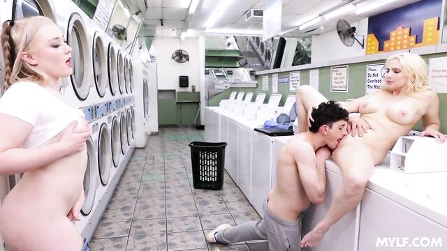 - Description: Christie runs a laundromat, and all her employees asked for the day off so she has to fill in on Mother’s Day. Her stepdaughter Eva is trying to get her mom to take the day off, but when Nick, a handsome regular customer, walks in, she realizes why her mom doesn’t mind working today. She encourages her mom to flirt with Nick and proceeds to watch them as they begin to fool around. Eventually, they all join in together and give Christie the Mother’s Day that she deserves.