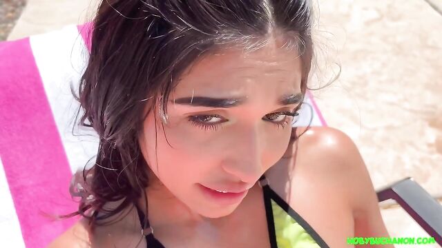 - Description: Reina is tanning by the pool when she tells me she needs help putting on suntan oil. I apply it all over her body then finger her tight pussy and she tells me she wants to thank me by sucking my cock. I fuck her face while she's sitting on the chair then she rides my cock and I face fuck her in the pool. We go inside and I jump on the couch and fuck her face. She sits on my cock and rides it. I stand up and fuck her face then I eat her pussy, put my hand up it then finger her butthole. I pound her tight cunt then I spank her and pound her from behind. I switch to POV and she sucks my cock and I triangle my legs around her head. She eats my ass then I sit on her face and fuck it. She rides my dick then bends over my on the couch and I fuck her throat. I pound her pussy on the couch then I pick her upside down and throat her. She licks my nipple and sucks my cock then licks my feet and toes and deepthroats them. She gives me a hand and foot job then I eat her ass, finger it and put a butt plug in it. I fuck her throat POV then I pound her pussy until it hurts and take the butt plug out. I fuck her asshole missionary, from behind and she rides it until I creampie her anally. I take her to the bathroom for one last surprise. Reina was a good girl for Daddy!