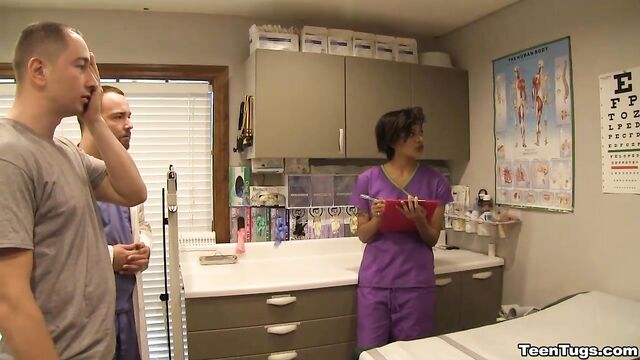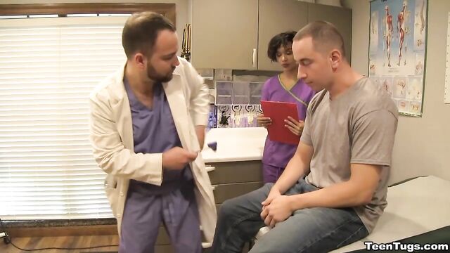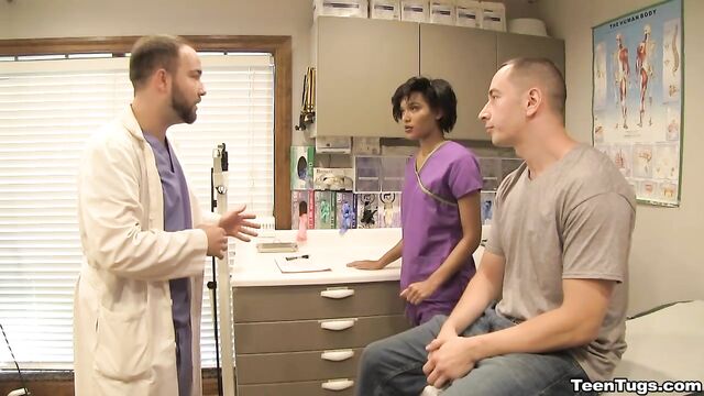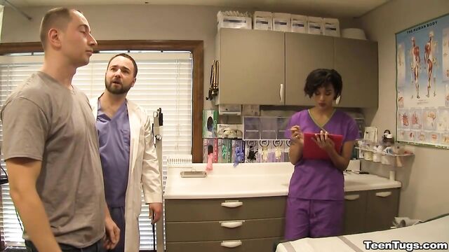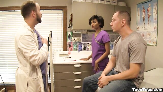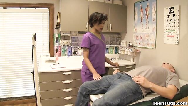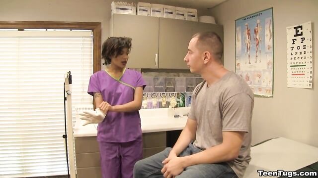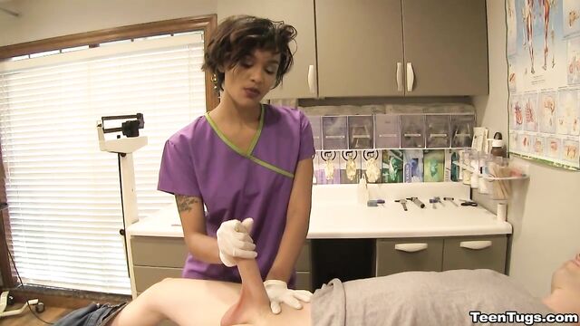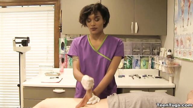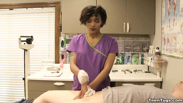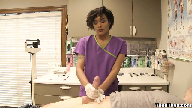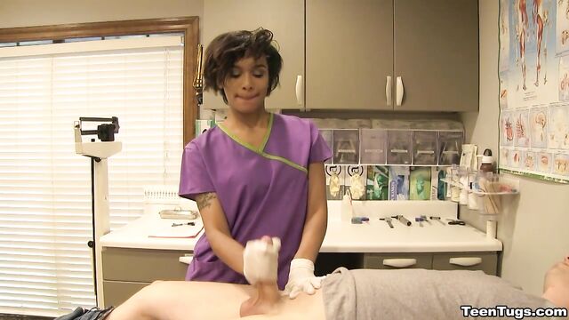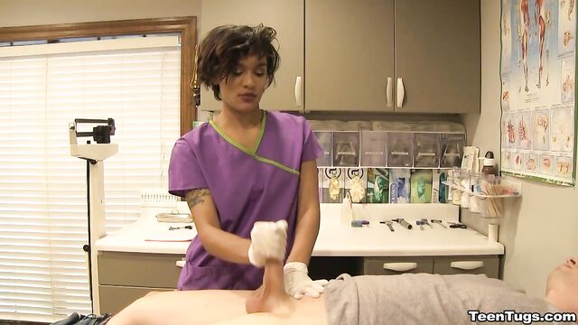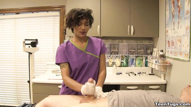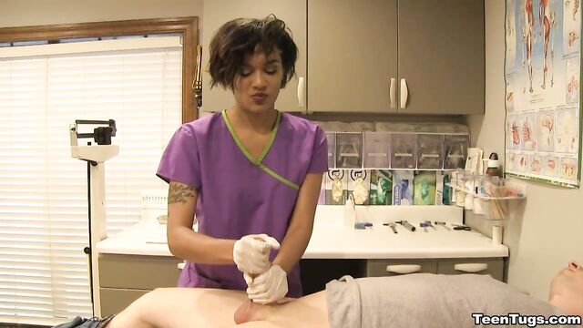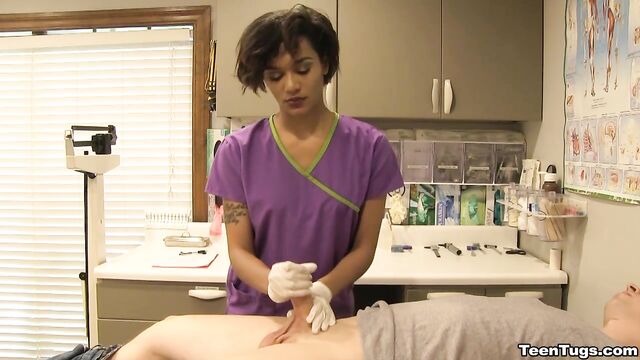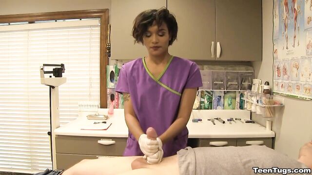 - Description: John is in for his exam when the doc steps our for an emergency. Luckily Nurse Barnes is available to extract the needed samples. She pulls out his hard cock and milks him with latex gloves, stroking his hard cock until he accidentally explodes his semen, shooting his goo over his shirt. Nurse Jasmine believes shes has enough for a sample.