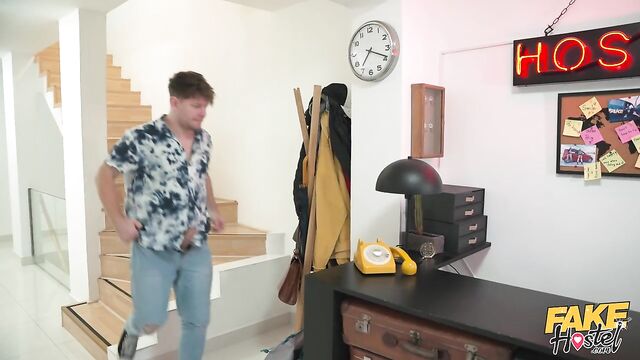 - Description: After checking into the Fake Hostel, beefy stud Michael Fly and his gorgeous Ukrainian girlfriend (Mia Trejsi) are shown to their room by pervy host Steve Q, who spies on Mia gagging on Michael’s huge dick! Michael returns the favour by eating out the raven-haired stunner’s tight pussy and fingering it before sliding his rock-hard cock deep inside. Wanting Mia for himself, Steve lures Michael out of the hostel room and takes his place, fucking the pierced babe's juicy lips in doggy position! With her beautiful tits on display, Mia alternates between fucking the two well-hung dudes, bouncing on Steve’s thick cock cowgirl-style until her hunky boyfriend returns, and then quickly hopping off Steve and riding Michael instead! After getting banged in missionary position by Steve, it’s Michael’s turn to get his cock serviced by the gorgeous nymph until he cums directly into her mouth!