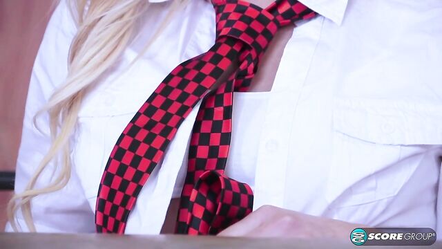 - Description: Vanessa looks adorable decked out in her school uniform and knee-high socks. She gives us a peek of her panties under the table, and just as we guessed, they're white cotton. Vanessa passionately strokes her slit, then undresses to reveal her perky tits and ass. Now that she's naked and worked up, she busts out her dildo.