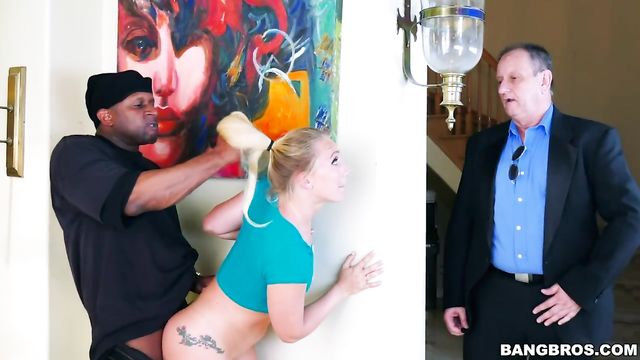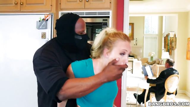- Description: AJ Applegate is at home on the cellphone with her bf talking about a robbery that happened by her house. AJ Applegate is intrigued after she hears the owner got tied up before getting robbed. He comes up with the plan to sneak into her house after she said she finds it kinda hot. Meanwhile she dances over to the kitchen while she listens to music, this chick shows off her great big ass here. She shakes, bounces, and twerks all over with that big ass before her bf breaks in. After getting inside the house, he grabs her and places her on her knees to suck on his cock right behind her fathers back. They get into it and they even start fucking while hiding from the dad. Things get super hot once the dad goes upstairs as the two start fucking hard on the sofa until he cums in her mouth.