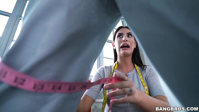 - Description: Jay has called over a tailor service to get him fitted for his upcoming nuptials. Lucky for him and all of us, August shows up for his fitting. As she is trying to get measurements around his thigh area, of course she notices a big huge bulge. Unable to control herself, she talks him into removing his clothes. Watch one of the hottest models in the business take it from a big black cock and enjoying every minute of it.