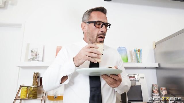 - Description: Manuel Ferrara is an obedient, office-working stiff who worships routine. His coworkers might describe him as "a stick in the mud," but when his flirty, big-breasted coworker (London Laurent) coats his pencil in her pussy juices, Ferrara sniffs the arrival of a new office culture. Laurent flops her massive tits out in the cafeteria, and (a newly liberated) Ferrara smacks them with his huge uncut cock. Before long, another coworker (Hailey Rose) notices, and they're both sucking his dick — teamwork! Ferrara fucks them around the cafeteria, the girls alternating between riding his hog and mashing their boobs in his face. Once Hailey's pussy begins flowing, it's apparent that the new office collaboration is working. True to his nature, Ferrara stiffly works their mouths and pussies before coating their faces in cum. What a stunning example of project management and problem-solving — but a new problem arises: who can return to work after that?