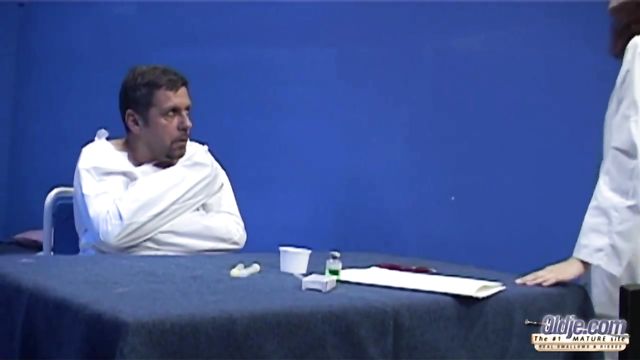 - Description: The lady doctor has scheduled an examination of her insane patient in order to prescribe him the best treatment. She orally examines him, the whole lengths of his penis is studied thoroughly. Oldje's reflexes need to be tested, also his senses. Especially touching. But since his hands are tied in restrain, his tongue does all the job, when his doctor lands her pussy on his face. The lady doctor teases only the tip of his dick and he craves to get in, right to the balls. For now he will be in submission, waiting for the moment when she will release him. Then the party starts. She is fucked standing up from behind, her ass stretched for the whole meat to fit her tight pussy. Payback time for oldje, he gets his ways with her, fills her face and hair with her sperm and locks her in the cell. Now that's a happy end! For one of them at least..
