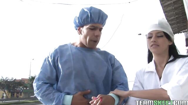 - Description: Our boy Carlos hasn’t been feeling well, something with his stomach has been acting up. We took him to the hospital and he met a sexy young nurse Juana who was playing a bunch of guys for their money and not paying attention to making him feel better so he got up and tried to walk home. Juana chased him around the block and got him back inside. Being the dedicated professional she is she made sure to pay him some more attention and get him back on his feet. She checked vitals and then stripped down and showed off her amazing ass. Juana was doing anything she could to make Carlos feel better even sucking and riding his cock. Bouncing up and down and getting her pretty face drenched with sticky cum!