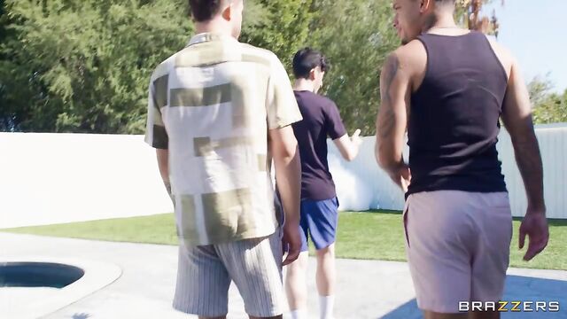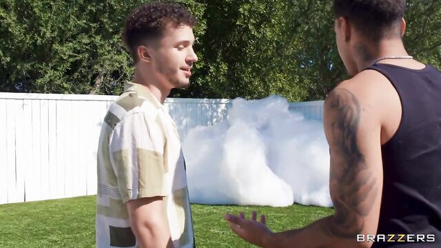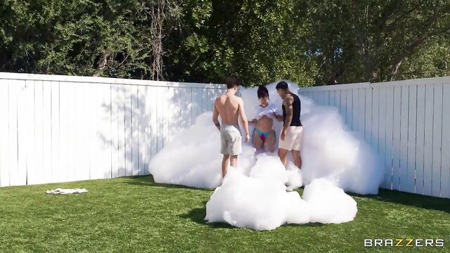 - Description: Air Thugger & Apollo Banks are invited to their college buddy’s house to hang out – except their new friend’s idea of a fun party is having his mom, Syren De Mer, set up a foam projector in their backyard - with only the three of them. Well, hot MILF Syren sees it as a great opportunity to make some friends of her own – why waste these two young bucks and their throbbing cocks if they’re within her reach? Especially when she can coat herself in foam and tease them right there under the sun before they sneak inside for a double penetration fucking!