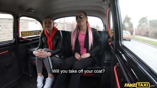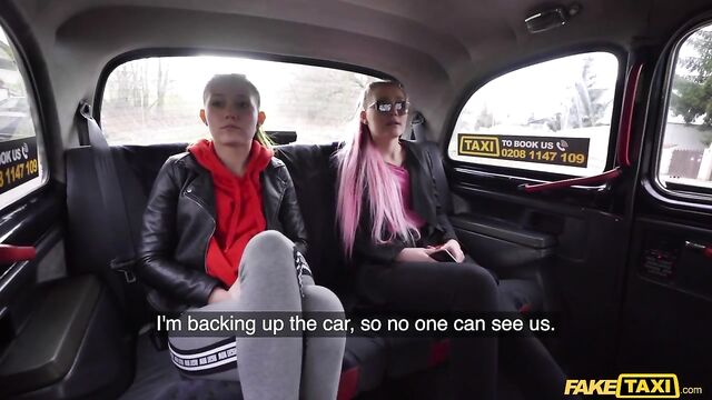 - Description: This gorgeous girl with green hair got into the Fake Taxi today, asking to be lifted to the University. Before I could take off, the same girl got in, but this time she had pink hair. I did a double-take, but I was still sane: they were identical twins. The ladies were on their way to a math exam, but had not adequately prepared. Before driving, I was a tutor, so I offered to quiz them. I added stakes: if they got it right, they could have the ride for free, but if they got it wrong, they'd have to flash me their boobs! Needless to say, they got it wrong. Their tits were firm and perky, so I asked if they would like the ride for free anyway. The trade? They'd wank my cock. Both sisters were enthusiastic, and they were so horny they gave me a blowjob too. I fucked them both in turn, and made them both cum, then came on both of their identical faces!