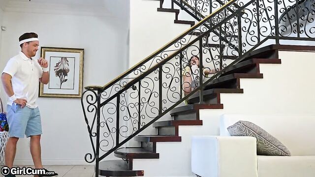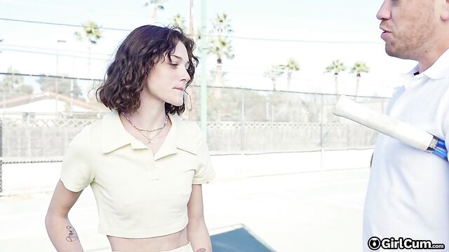 - Description: Shrooms Q hits the tennis court to play but her man has a better idea. He has put a remote controlled vibe into her pussy and zaps her as she tries to hit the ball. Soon, she’s so wet and horny that they rush inside to fuck!