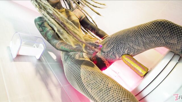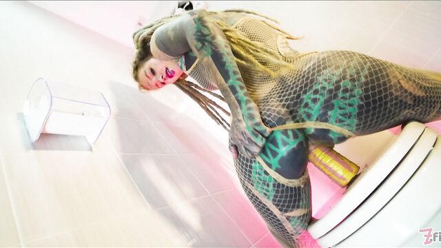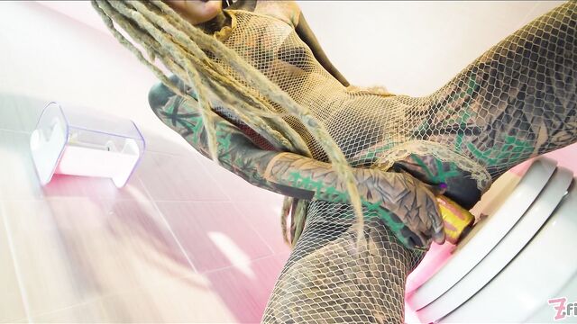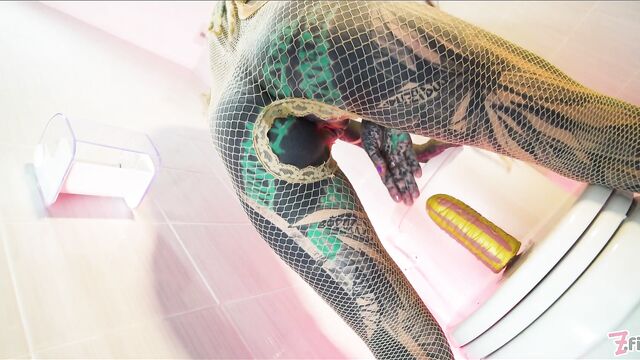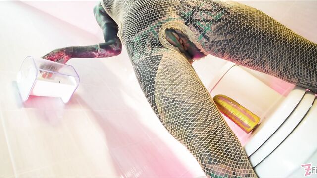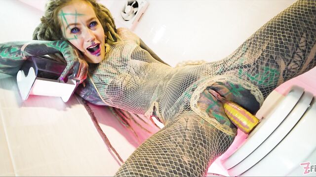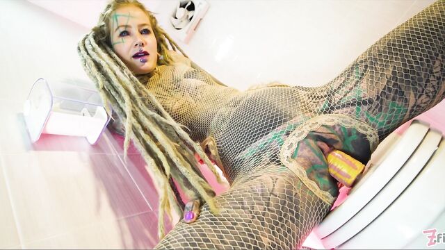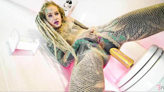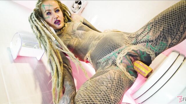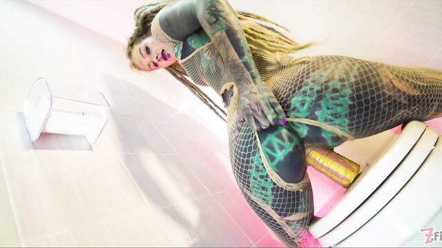 - Description: Naughty tatttooed Anuskatzz brings us with her to bathroom in her fishnet dress. Sitting on toilet she touches and fingers her pussy, rides a dildo, pees and squirts over it and fucks her asshole with the toy. CAMERA: Lily Lu- PRODUCTION STUDIO: Z-Filmz