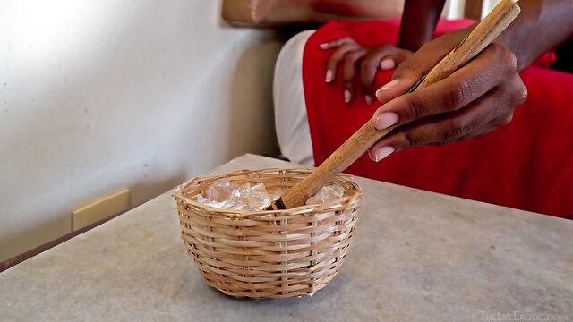 - Description: Gorgeous ebony babe Samantha A wakes up wearing just a black thong, and with decorative designs painted on her skin. Her face is covered by a sheer black scarf. Confused, she squirms on the bed, flaunting large, natural breasts. She unmasks and runs her hands over her beautiful body, skinny braids cascading down her back as she stretches.