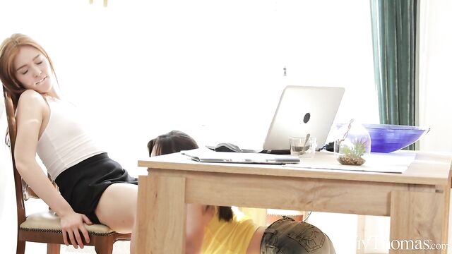 - Description: Stunning redhead Jia Lissa appears to be utterly focused on her work, but all is not as it seems. As Sandra Shine’s hot lesbian movie "Business Or Pleasure" – inspired by a true story by Tabitha Lowndes on MyErotica.com – begins, the camera pulls back to reveal cute brunette Hayli Sanders under the desk, eating Jia’s pussy hungrily. Jia is stressing out over a video call when Hayli decides to distract her in the sweetest way possible, tugging her panties aside to reveal the strip of natural red hair that leads to her pussy. Jia becomes breathless and confused as Hayli licks her, until at last her boss ends the call and she is able to concentrate fully on pleasure. Taking off her panties and tugging at her nipples, Jia moans with arousal as Hayli’s eager tongue gives her an intense orgasm. Now Hayli lets her shorts drop and sits on the table with her legs spread so Jia can repay the favor. Jia sucks and licks her girlfriend’s diamond-hard nipples eagerly, then gazes up at her as she laps at her shaved pussy. Hayli arches her back, squirming in ecstasy as Jia fingers and eats her to an overwhelming orgasm. But there’s another surprise in store for Jia…