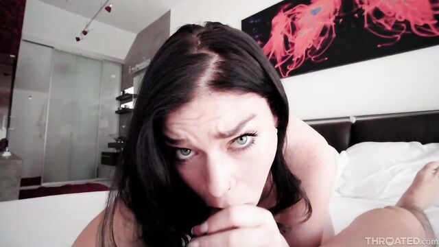 - Description: Green eyes, back haired beauty Katerina Deville really likes sucking cock. She visits the Throated lair to show off her skills by tackling Victor Ray stiff prick. Her romantic but deep ball draining technique will be rewarded with a mouthful of warm male goo.