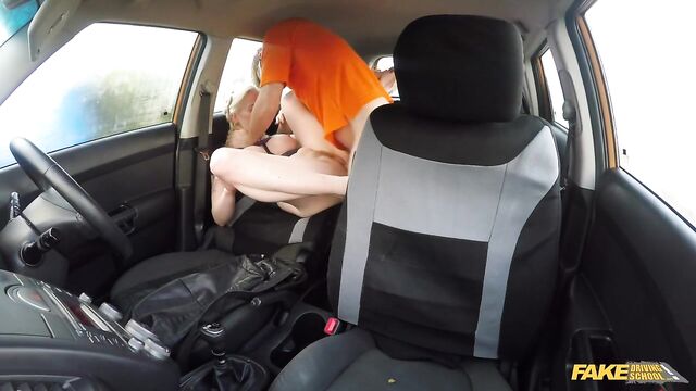 - Description: Carly came to her lesson all dressed up for me! I told her there was no need to look pretty for a driving lesson, but to be honest, the sight of the busty blonde in a tight top and pencil skirt made my dick hard. I must have started touching myself, because Carly stopped her practice test to yell at me for having my cock out! I was mortified. This is it, I thought, I'm sacked for sure! Carly said to prove my dick wasn't hard by taking it out of my pants, so I did it, knowing I'd be caught. Then the cheeky blonde suggested we do something with my erection. I was a bit shocked, but more relieved. She pulled out her wonderfully massive tits and got to bobbing on my big dick right there in the front seat. The naughty bird had pierced nipples and was covered in tats, so maybe she wasn't the fairy princess I had thought. She rode my cock in the front seat right there in the parking lot, in full view of anybody, then squirted pussy juice all over the car! I wonder what my wife will say when I come home with makeup on my trousers...