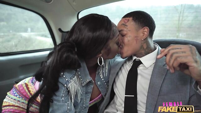 - Description: I picked up this cute guy in the Fake Taxi today who needed a lift into the centre of Prague. After setting off, he told me he was meeting someone for a date. We arrived a little early, so I parked up and joined the tattooed stud in the back of the cab. I noticed his bulging cock through his trousers, and I was also feeling horny, so I treated him to a sloppy, deepthroat blowjob! After gagging on his swollen dick, I sat my pierced pussy down on it, riding it cowgirl while he played with my huge fake titties. Afterwards, I spread my stocking-clad legs and invited the well-hung hunk to bang me in missionary before hopping back on top to bounce my bubble butt on his dick some more! Next, I put myself on all fours to take a doggystyle pounding from behind, and then he covered me in a hot, sticky facial!
