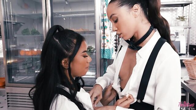 - Description: Ameena Green is bored at work so takes out her phone to give her fans a sneaky live show, but her fellow cater waiter Alexis Tae threatens to report her for slacking! Ameena has an idea that will make them both happy: offer Alexis a taste of her pussy instead. The hotties lick and finger each other, and use the vibe Ameena brought for her show before scissoring in the kitchen. Alexis gets a hot fuck, and Ameena's fans get an even sexier show than they expected!