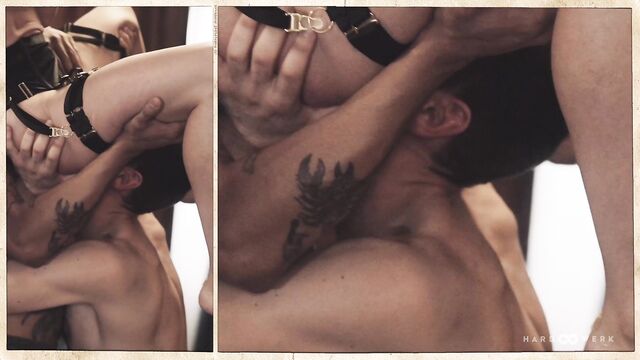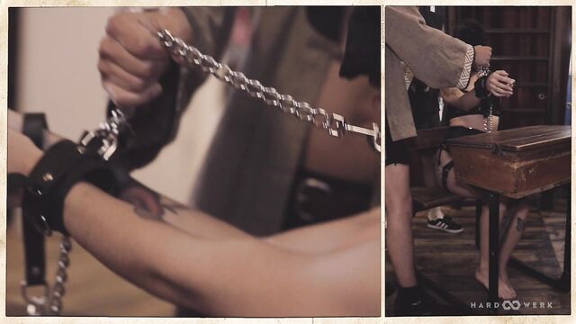 - Description: CORPORAL PUNISHMENT, CORPOREAL BLISS We are led – and almost literally so, leash and all, as lead performer Kleopatra appears blindfolded onscreen – into the second installment of HardWerk’s Triptychon series by the ring of a bell, the creak of an old wooden school desk, a nervous lick of the lips and three waiting figures. Hanging in the air with it all: anticipation, intention, veneration. It’s not for nothing that the filmmakers have adopted a slower pace for this intense gangbang – there’s a meditative quality to the echoing spanks and answering whimpers, to the push and the pull, to effortless dance of desire between the four participating performers; an absolute presence of mind and an absolute presence of flesh. As with the previous Triptychon film, the composition finds its own seamless choreography across multiple perspectives, so creating stunning juxtapositions between pain and pleasure; between a hand tightened around a throat and the easy laughter in each moment of disarming tenderness; between the polish of ‘pre’ and the primal of ‘right now’…