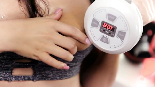 - Description: Hot Czech brunette Vanessa Decker is working up a sweat on her cardio machine. She's wearing hotpants and a crop top that show off her body tan, with an althetic yet curvy shape. She steps off the machine and grabs a vibrating dumbbell. The vibrations are meant to help tone her muscles but, as she curls the weight towards her pert breasts, she starts to feel horny. She pulls down her top to expose her tits and touches the buzzing dumbbell to one nipple as she fingers the other. Next, she moves the weight down over her belly, pressing it to her crotch through her tight hotpants. She eases these down and holds the weight between her thighs, moving against it as the vibrations course through her naked, trimmed pussy. Sweat trickles down her firm ass cheeks and she moans with pleasure before sitting on a yoga mat, legs splayed, with the weight tight up against her snatch. She grinds up against it, then sets it aside to use her hand instead. She parts her pussy lips, rubbing her clit, then slides a finger inside, knuckle-deep. Finally, she squats over the dumbbell, body trembling as she rides it hard, moaning and bucking her way to an intense climax. As her orgasm fades, the camera lingers on her beautiful body. She towels away her sweat, then switches the vibrating weight on again, ready for round two.