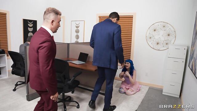 - Description: The boss is retiring, and his secretary has planned a celebration in his honor. She’s even hired a special surprise entertainer, Jewelz Blu. Little does she expect, Jewelz’s is a slutty Egirl who is down to clown and work her deep throat skills. After Jewelz shows off her ass-ets, Van Wylde and Alex Jones are put in charge of getting rid of her. Jewelz has a different plan involving both their dicks, and and puts both guy’s cocks to work on her pussy for a sneaky office threesome.