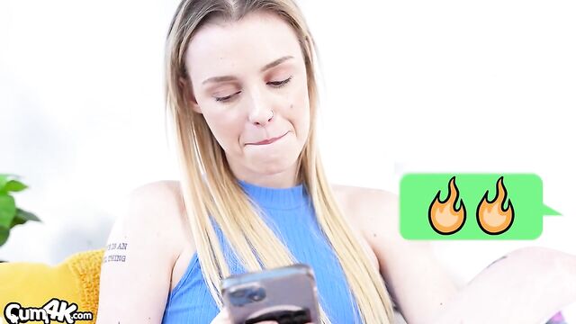 - Description: Skye Angel texts her boyfriend a picture of her pussy and invites him over to fill her up with cum.
