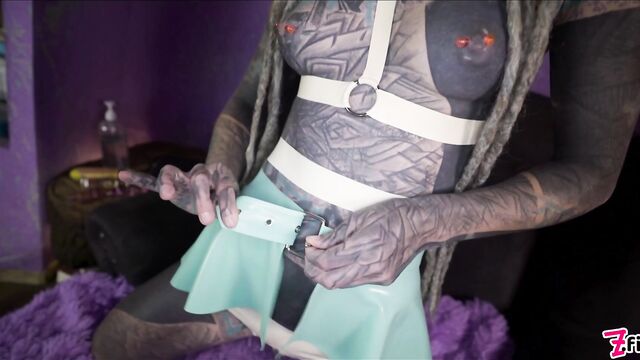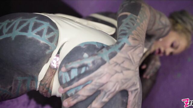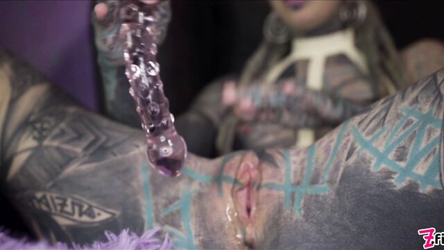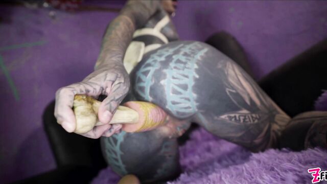 - Description: Loving to play with her tattooed holes, Anuskatzz starts with her fingers inside her twat and a butt plug up her nice round ass. She knows that she’ll need help. So, she grabs a double headed dildo and starts with her pussy and then shoves it up her asshole. That feels great, but she needs her hole spread even more, so she grabs a bigger, thicker dildo to put up her ass. Proud of her handywork, she uses her fingers to stretch out her gaping hole, then decides its time to work her pussy until she squirts.