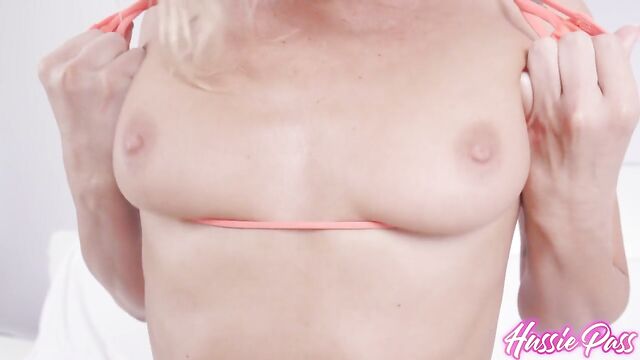 - Description: We're pleased as punch to welcome both Santa Monica native Whitney OC and her co-star, Zaddy2x, to the Hussie Pass set today for this hot interracial MILF update. After director Johnny Robins helps us learn a little about the SoCal PAWG, Whitney gets naked and shows us how bendy she is by masturbating with her legs outstretched, first with her fingers and then with a considerable translucent rubber DONG! Zaddy steps into the scene with some lube for her perky breasts and delightful 36-inch turd cutter, which she then twerks for us. Whitey then begins to suck, slobber, and gag on Zaddy's big cock, first on her knees, then in a lie-back blowjob, and eventually in between his legs, and since she's there, she might as well give him a footjob, right? Zaddy repays all the oral favors he just obtained by going down on Whitney and slurping on her meaty vag. Ultimately, we get to the fucking, as Whitney takes all of Zaddy folded up like a pretzel, cowgirl, reverse cowgirl, and doggystyle, until he pulls out and unloads on her face, in her eye, and up her nose. We followed our two new friends into the shower afterward for a post-sex discussion and clean-up.