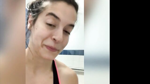 - Description: Fit slut Abbie Maley kneels down in front of the toilet in a public restroom, her legs spread open, her hand moving fervently between her thighs! Her face is flushed with desire, her eyes closed as she loses herself in pleasure. Her fingers move with skill, gliding over her folds and circling her swollen clit, her body tense and trembling with pleasure.She can feel herself getting wetter as she teases her clit and thrusts her fingers inside her pussy. The sound of Abbie's fingers teasing and rubbing against her skin creates a subtle but distinct wet slapping sound that echoes off the bathroom walls. The sound of the door opening and closing adds a thrill to her latest masturbation experience experience!