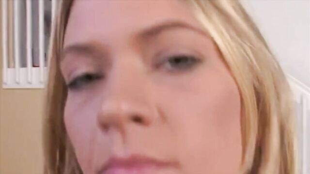 - Description: Chipper blonde Michelle Honeywell can't stop smiling during her small interview on the couch. Before long her true slut nature comes out, and she shows her small white titties. As it turns out, she forgot to wear panties to her interview. She shows of her tight little ass and gives a nice upskirt view before putting on a the communal thong, and enticing with her camel toe. Naturally she starts sucking on his throbbing erection like a pro, and once she's got it slobbered up, she jams it into herself. To make it even nastier, the thong is not removed as she slides up and down on the wet cock. He flips her for some doggy pounding, with her making eye contact all the while.