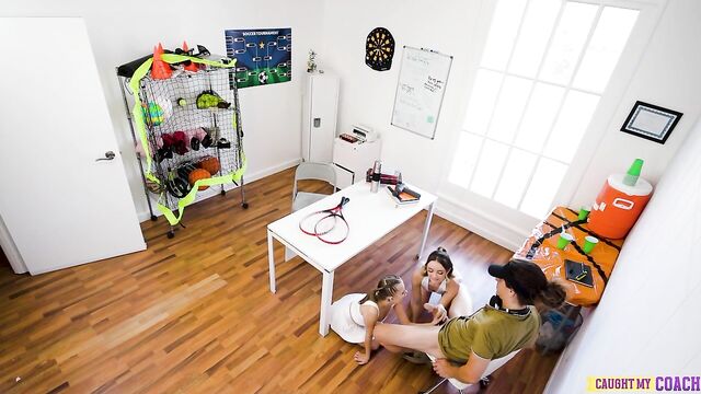 - Description: Coco Lovelock comes strutting in to Bruce Venture’s office and goes right under his desk to begin sucking him off. There’s nothing subtle about the exchange. Bruce is enjoying his blowjob until Maria Kazi walks in for a meeting. Maria is all business, which makes it difficult for Bruce to enjoy the handie and BJ Coco is continuing to deliver.When Maria finally realizes what’s up, she scolds Coco for not sharing sooner. The girls get to work together, blowing Bruce’s mind with their hot mouths. Maria takes a ride on Coach’s dick in reverse cowgirl as Coco strips out of her miniskirt so Maria can eat her pussy. As Maria gets to her feet, Bruce keeps her pussy party going in doggy.Coco gets a turn as she lays on Bruce’s desk and slurps at Maria’s juices. When Maria pushes Coach into his chair, she rides him in cowgirl while shoving her tits in his face so she can reach Coco’s cooch. Coco tags in, riding in cowgirl and then reverse cowgirl as Bruce goes for a pussy feast in Maria’s snatch. Then Maria gets one last pussy pounding as Coco rides her face. The girls finish Bruce off with another double BJ, leaving them a treat to share in the afterglow.