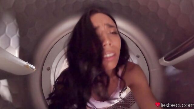 - Description: Petite babe Violeta Grey is busy folding laundry when her tall, sexy neighbour (Lia Lin) approaches. When Violeta gets stuck inside the washing machine, raven-haired Lia teasingly strokes Violeta’s pert ass that’s sticking out of her booty shorts, and then she fingers the Brazilian’s tight pussy! Afterwards, the amarous couple move to the sofa, where they make out and scissor together before Colombian beauty Violeta sits her horny snatch on Lia’s face for a tongue fucking, putting her small, natural tits on display. Wanting to cum, the inked-up lesbians mutually masturbate until they both reach an explosive orgasm.