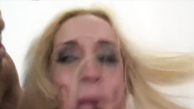 - Description: Naughty blonde double penetrated in interracial gangbang.
