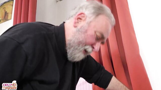 - Description: Horny grandpa enjoys a wild ride with a milf who has huge tits! She enjoys having sex late into her pregnancy.