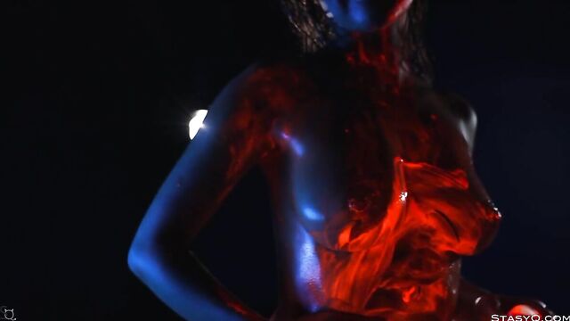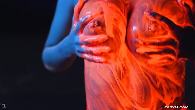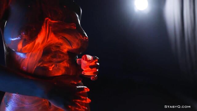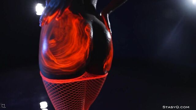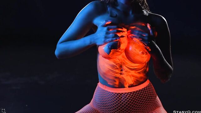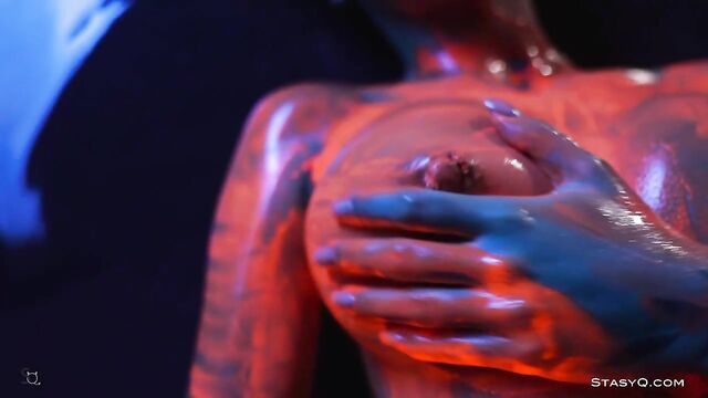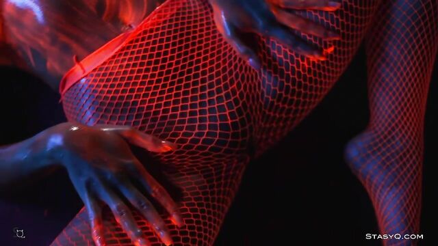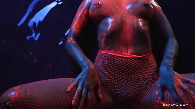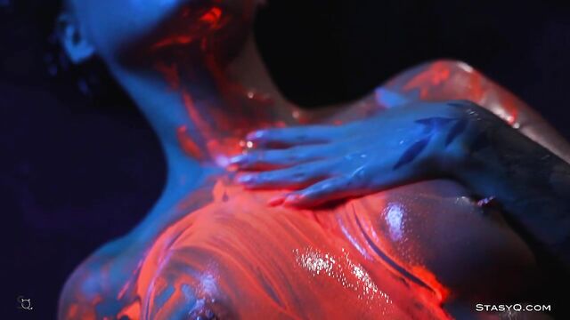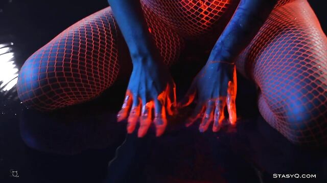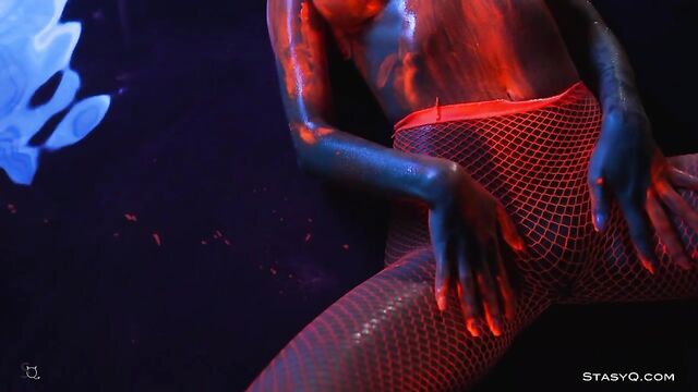 - Description: Neon lingerie, hot body, and a pretty face. That's what Ira Veter brings to the table. This fiery StasyQ model is one of a kind. She does her little erotic show in front of Said Energizer and his camera. The outcome is Video Release 621, which you can watch in VR. Due to the darkness surrounding Ira, the neon lingerie shines bright, bringing attention to the stunner's curves. The ravishing goddess wears pink fishnet stockings, and it's not long before she takes her top off. Ira Veter is swimming, surrounded by the darkness, wetting her naked breasts with pierced nipples. This release definitely stands out. The vixen turns up the heat to the max once she grabs neon paint, and she starts smearing all over her body. Soon enough, Ira Veter is all glistening and wet, teasing all your senses. If you want to see the stunner all naked, check the video out.