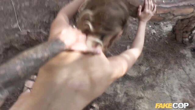 - Description: As a cop, I'm used to members of the public wanting to send me to hell. But when I spotted this cute Spanish teen walk by me glued to her phone, oblivious to the outside world, or anything I said to her, I had to intervene and make sure she was okay. When I finally caught up to her, I told her she'd accidentally walked onto a nude beach, and it was only fair to the other patrons that she take off all of her clothes to keep playing her cell phone game. Not one lick afraid of public nudity, Jimena started stripping down on the spot, and got absolutely naked where anyone walking by could see. While she kept playing I followed behind her, watching her big round ass cheeks waggle with every step she took towards her goal. After she wandered into a grove of trees and found what she was looking for, Jimena turned and asked why I still had my clothes on when she was fully nude! Without skipping a beat, she unzipped my pants and started sucking my uncut cock, then bent over a log while I fucked her good and raw.