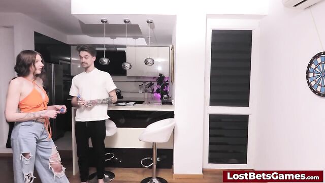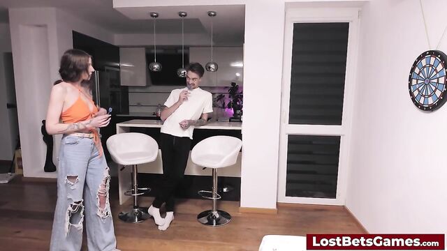 - Tags: hd blowjob big tits brunette babe cumshot POV point of view cum in mouth striptease strip game lost bet gaming lostbetsgames lost bet games lost game bet strip darts