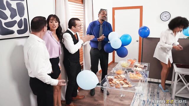 - Description: Office life can be such a pain in the ass. While sitting through a boring meeting, Vanessa Sky teases coworker John Strong into putting a finger up her ass, to liven up the day. This goes well until it's time to leave the meeting room, when they realize that John's finger is stuck in Vanessa's ass! This is terrible timing, as the employees are now expected to mingle at a small office party. It takes some effort, but John and Vanessa do manage to break free of each other without getting caught. They then sneak away together for a good anal fucking!