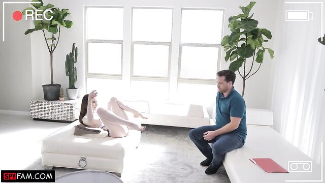 - Description: Hazel Moore is entering a bikini contest and want’s her stepdad’s opinion on different outfits. She starts stripping and playing with her pussy to seduce him.