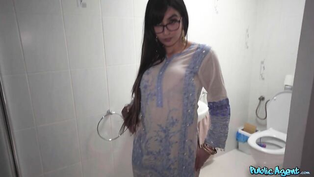 - Description: Today I met bespectacled babe Aaliyah Yasin, who was on her way to a Christmas party. I managed to convince the filthy minx to flash me her huge fake boobs, and it wasn’t long before she was on her knees sucking on my dick! Aaliyah was feeling really horny, so we found somewhere more secluded to continue our naughty fun. After stripping off, the dark-haired beauty treated me to another deepthroat blowjob, and then she bounced her wet pussy on me in cowgirl and reverse. I spanked her nice curvy ass as she rode me hard, and afterwards, we enjoyed a side fuck on the floor before I banged her in standing doggy. When it was time to cum, I wanked off until I spunked a creamy load all over Aaliyah’s pretty face!