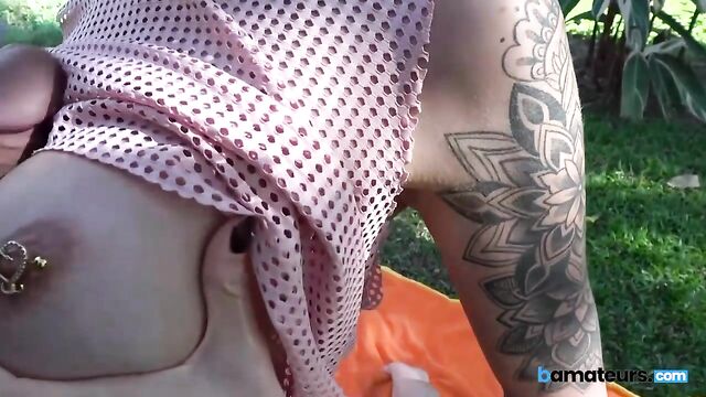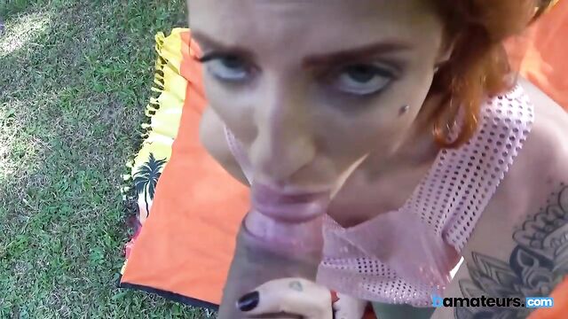 - Description: In this steamy outdoor scene, a stunning redhead with big boobs and eye-catching tattoos takes center stage. Filmed in a beautiful garden, she gives an unforgettable POV blowjob that will leave you breathless. Her deepthroat skills are on full display as she eagerly pleases her partner. The action heats up as they switch to doggy style, showcasing her curves and piercings in the sunlight. With each movement, the excitement builds, leading to an explosive cumshot that leaves everyone wanting more. Enjoy this hardcore adventure that combines beauty, nature, and passion!