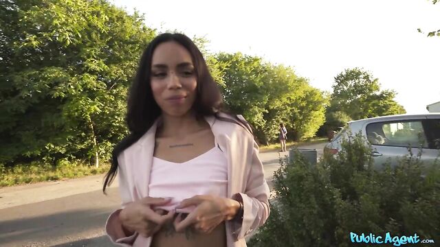 - Description: During my morning walk, I happened to come across sexy Colombian babe Violeta Grey. She didn’t speak much English, but I found out that she was a student here in Prague. I told the hot brunette that I owned a modelling agency, and offered her cash to show me her thong-clad booty and small, natural titties. Seeing Violeta’s incredible body was getting me hard, so I handed over a few more euros in exchange for a blowjob. Afterwards, the tattooed nymph spread her legs and invited me to fuck her tight pussy before sticking out her ass and taking a doggystyle pounding! Violeta sucked me off some more, and then she hopped on top and rode me in cowgirl and reverse before I spunked all over her pretty face!